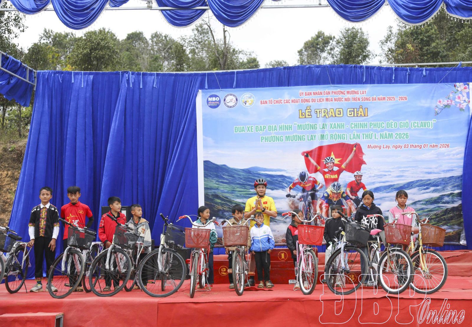 Nhân dịp này, Câu lạc bộ xe đạp Nối vòng tay lớn miền Bắc trao tặng 10 xe đạp cho các em học sinh có hoàn cảnh khó khăn của phường Mường Lay./.